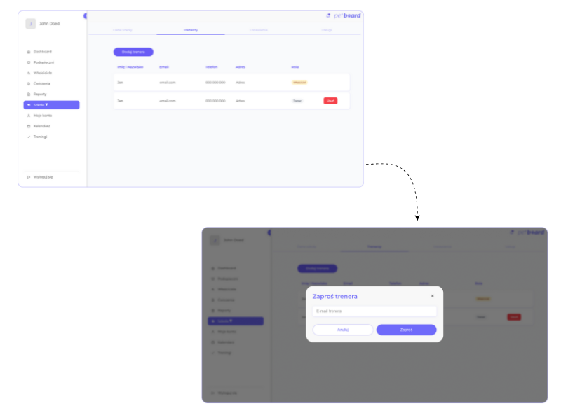 Załóż swój profil trenera, następnie stwórz konto szkoły. Ustaw grafik i zaproś innych trenerów, jeśli szkoła posiada ich więcej. Zrobisz to w zakładce